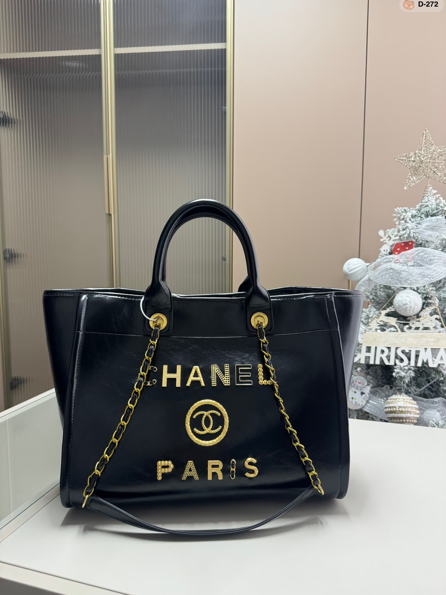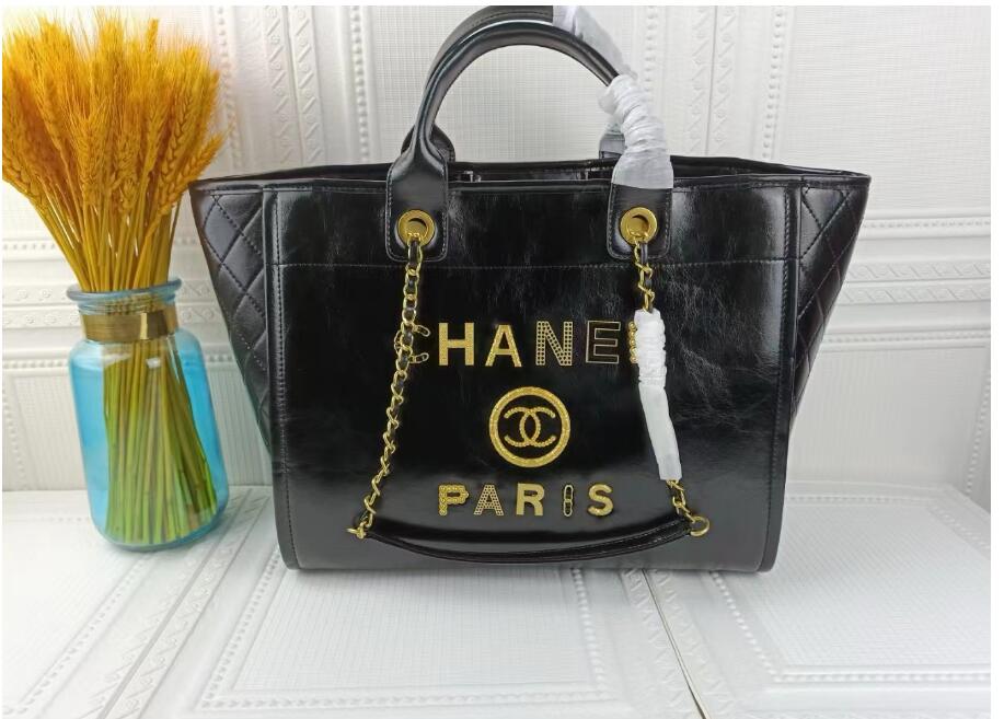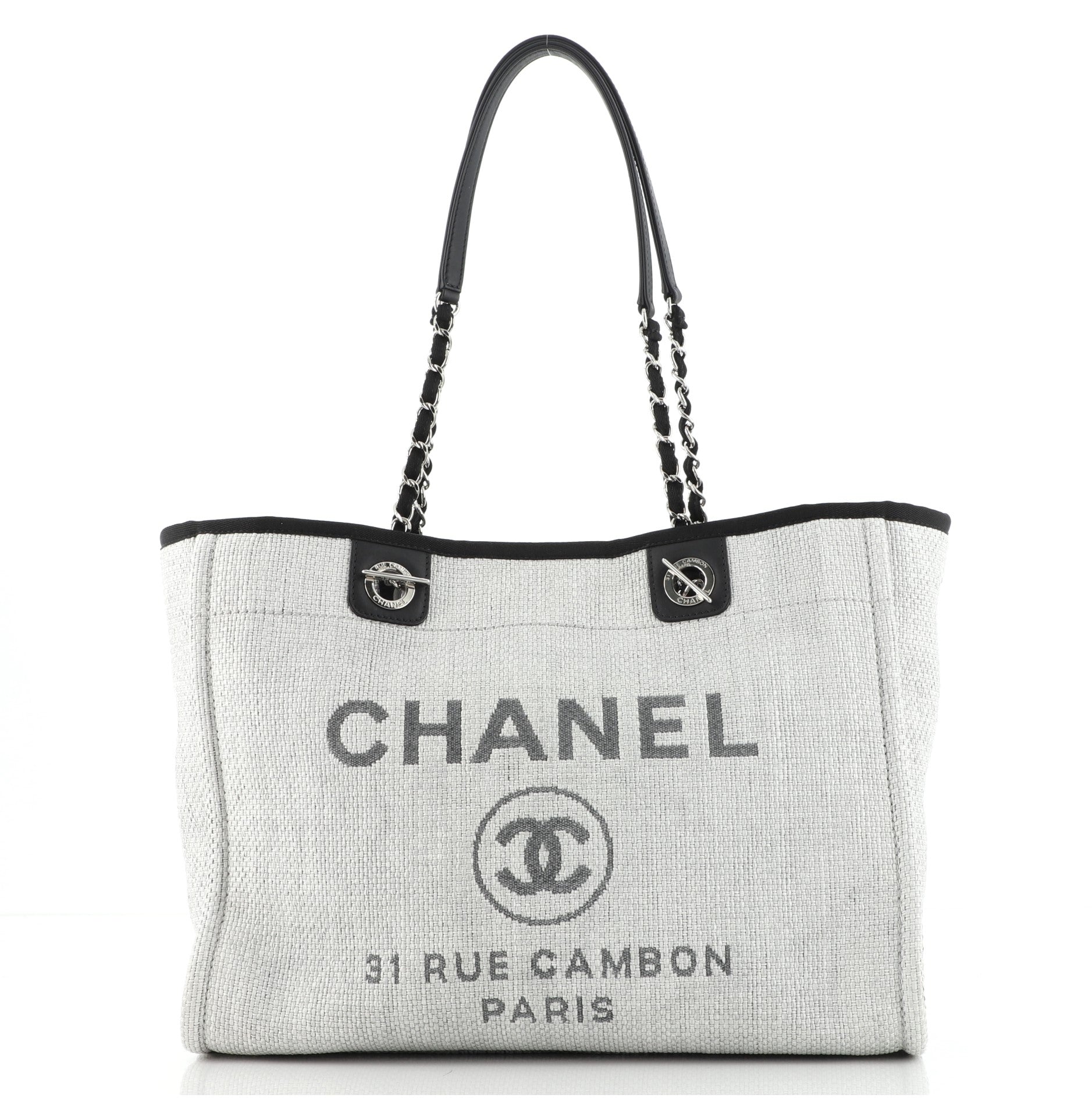 CC Deauville Tote Woven Chain Leather Logo 21S