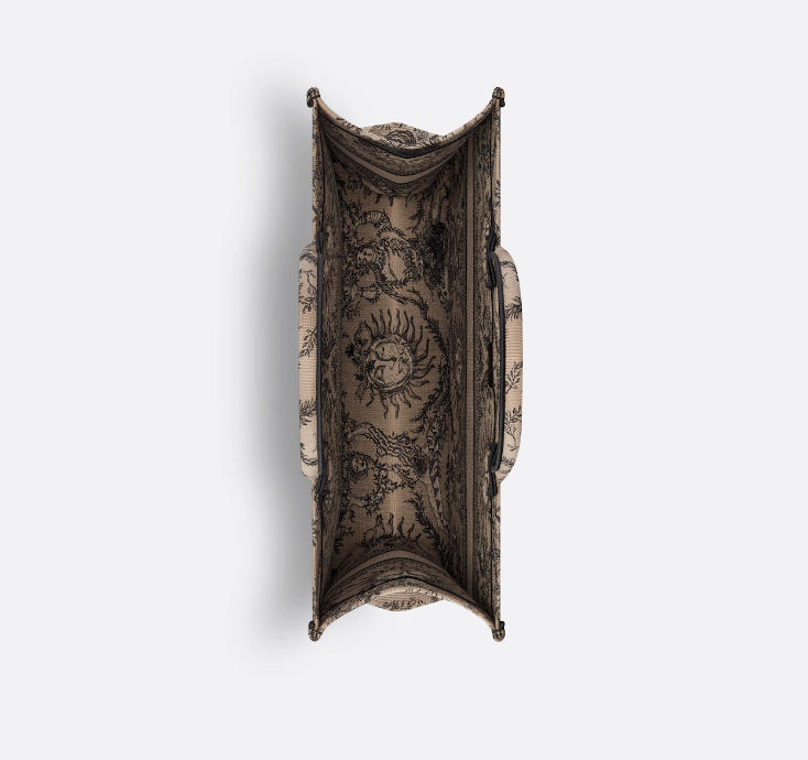 D Book Tote Beige and Black Toile de Jouy Soleil Embroidery