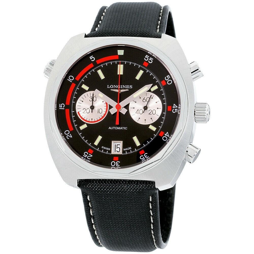 Lg Men's L47544724 Heritage Column Wheel Chronograph Automatic Black Leather Watch