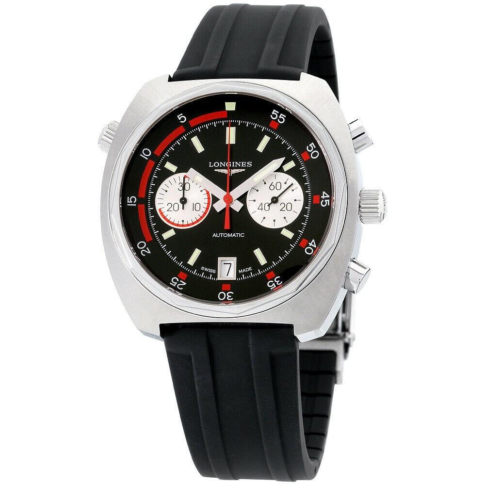 Lg Men's L2.796.4.52.9 Heritage Chronograph Black Silicone Watch
