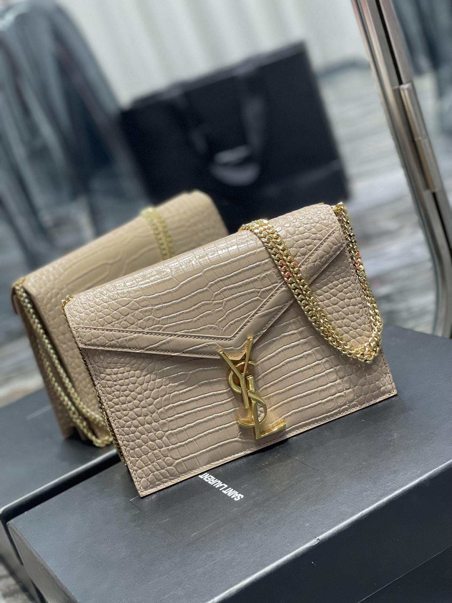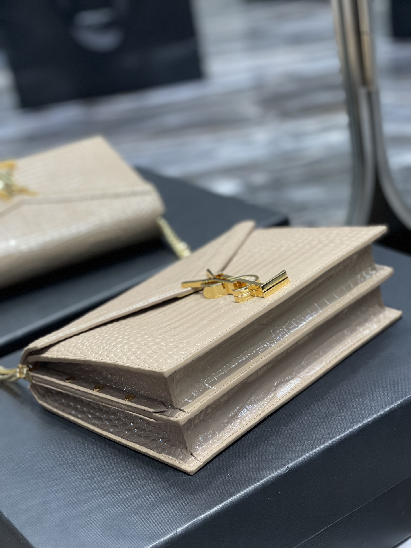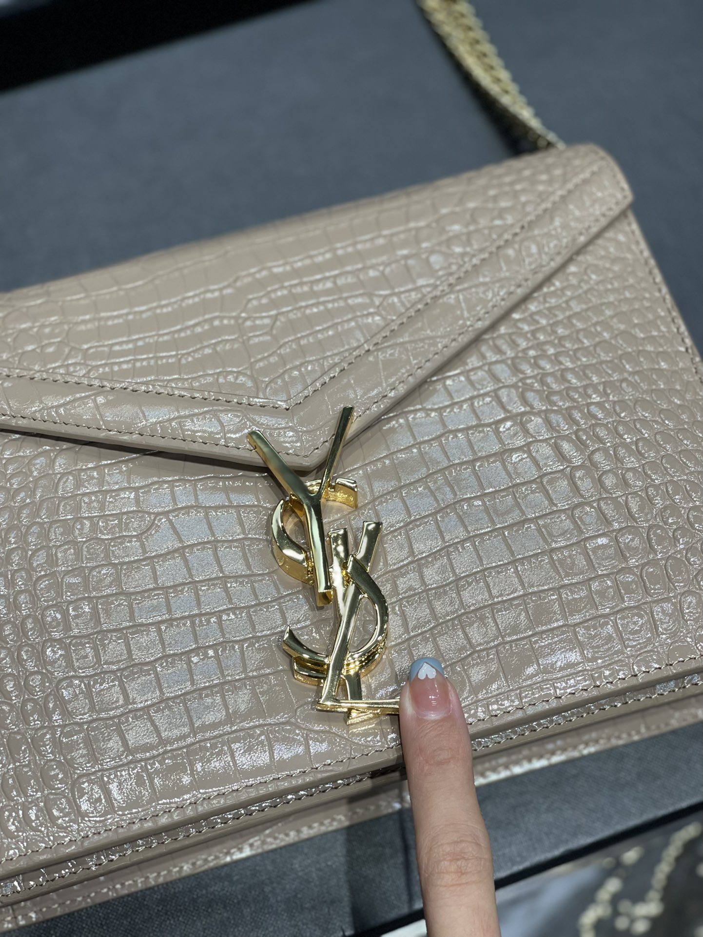 Y Medium Sunset In Crocodile Embossed Shiny Leather Bag