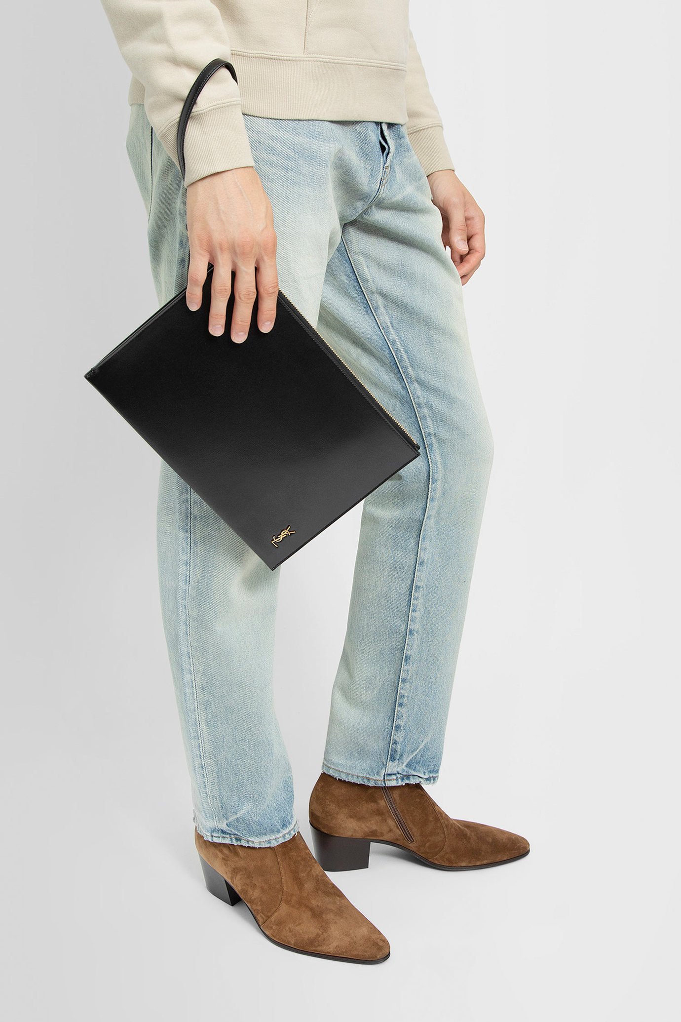 Y Uptown Leather Clutch White